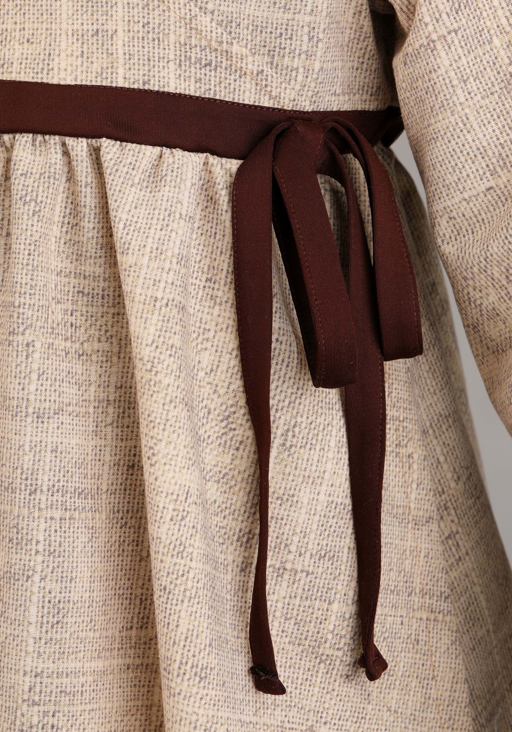 - Faux linen hooded dress has back elastic waistband, minky hood has foam backed ears with faux fur, polyester knit lining
