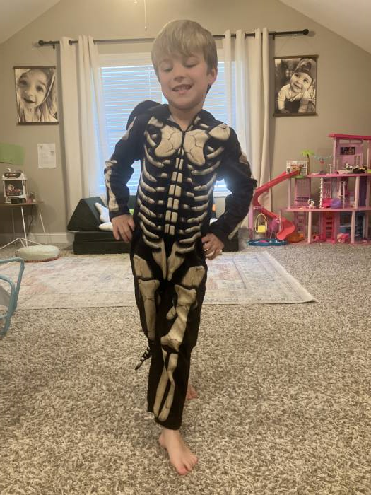 Size SmallCostume has worked great for my kindergartener this year. He needed a costume that he could undo himself at school in order to go the bathroom. He currently wears a size 4T pants and 4-6 shirt and fits a small. We initially got this costume for school only, but he has chosen to wear it to every Halloween event . . . community party, piano concert, and trick or treating. He loves that not only is the costume a dinosaur, but it is spooky. He also likes that it is easily recognizable as a stegosaurus and the tail is stiff/stuffed so he can swing it around. Mom loves that it doesn't have a mask and the design on the hood is lightweight as he struggled with this part of a costume last year. I'm getting the next size up for next year.Bottom Line Yes, I would recommend this to a friend.Was this review helpful to you? - One StarBy ???? | January 5, 2023