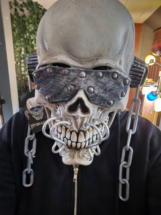 This is a magnificent show-piece for fans of the band. The chains and mouth hooks are a sturdy plastic design and the detailing of this mask is very well done. It's not easy to see through the eye-slits, but then again, this is more of a collector's piece than a functional mask (although I did wear it for a bit on Halloween).