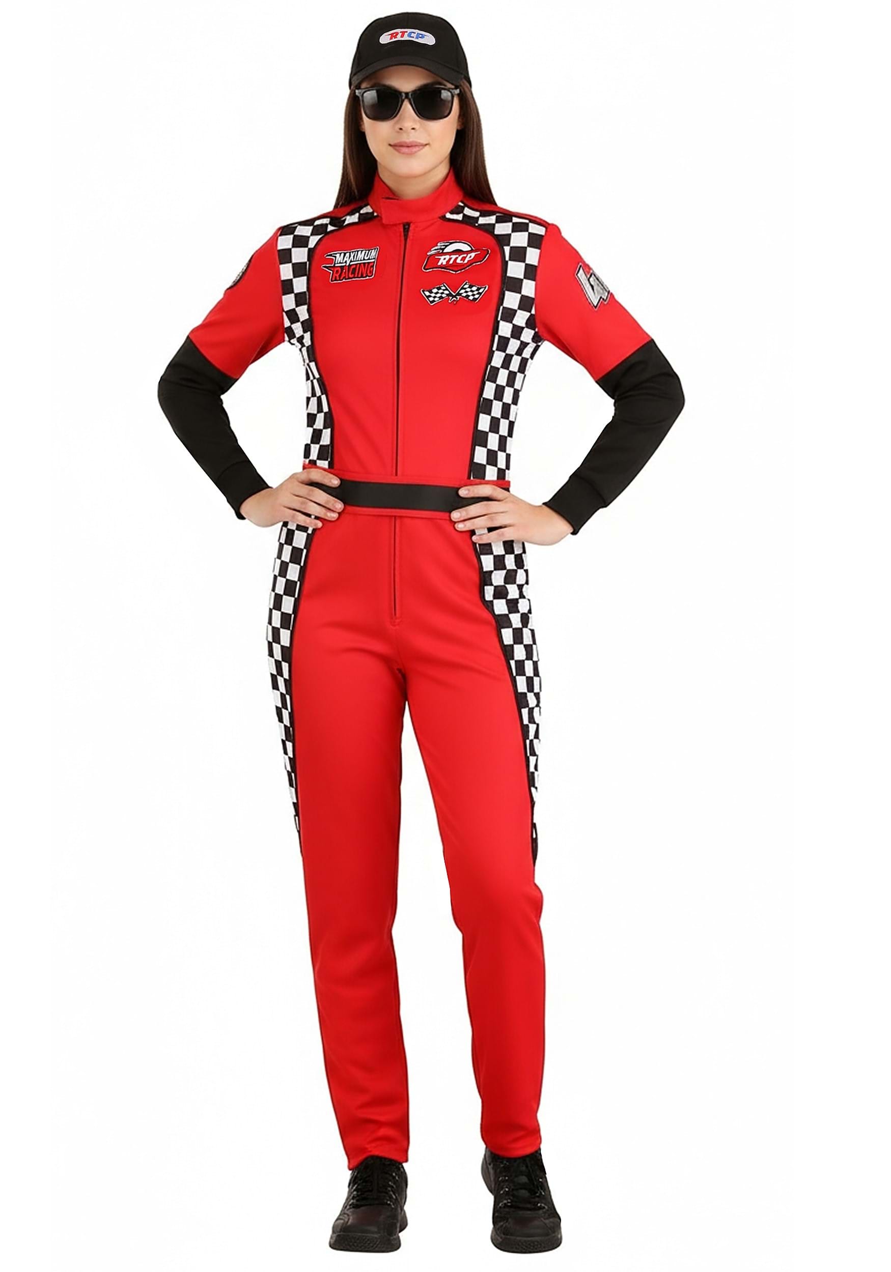 Our exclusive costume comes with a jumpsuit with front zipper, rib-knit cuffs at the wrists and ankles, and checkerboard side panels edged with black piping. The baseball cap has a hook and loop fastener in the back and an embroidered patch on the front. Some cool shades and slick black racing gloves sold separately could help pull it all together. We don’t know everything you need to get started racing, but if you’re confident it’s what you want (we couldn’t deal with the lack of bathroom breaks) we are confident that our Swift Racer Costume is the first step in the long journey toward getting you in the middle of that vaunted podium!
