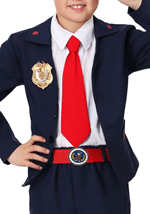 This is no basic FBI costume, this is a licensed Odd Squad uniform. It features a dark blazer with red trim and a gold badge on the breast. The costume has all the little details like a white shirt front with a red necktie, and a belt with the Odd Squad icon. It's completed with an Odd Squad agent card that can tack on to your blazer.