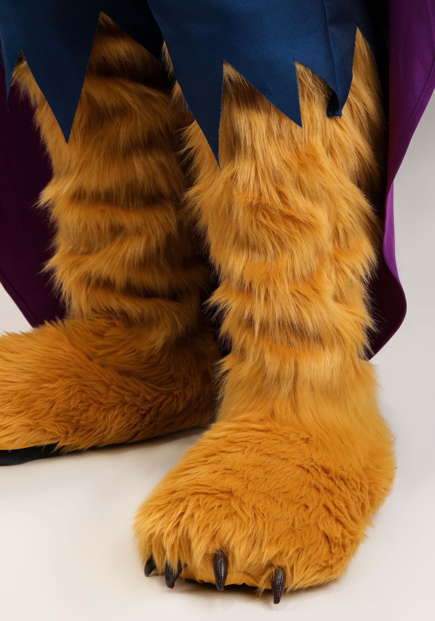 The fur-covered gloves and shoe covers secure with elastic cuffs, complete with faux leather claws. The mouth-mover mask, with interior padding and elastic straps shifts as you speak. Small eye openings subtly limit vision, enhancing the illusion and completing the look.