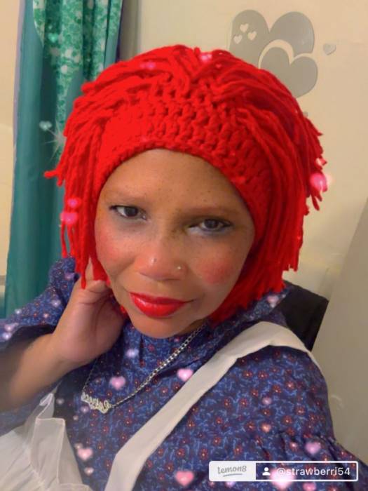 - Knitted red yarn wig