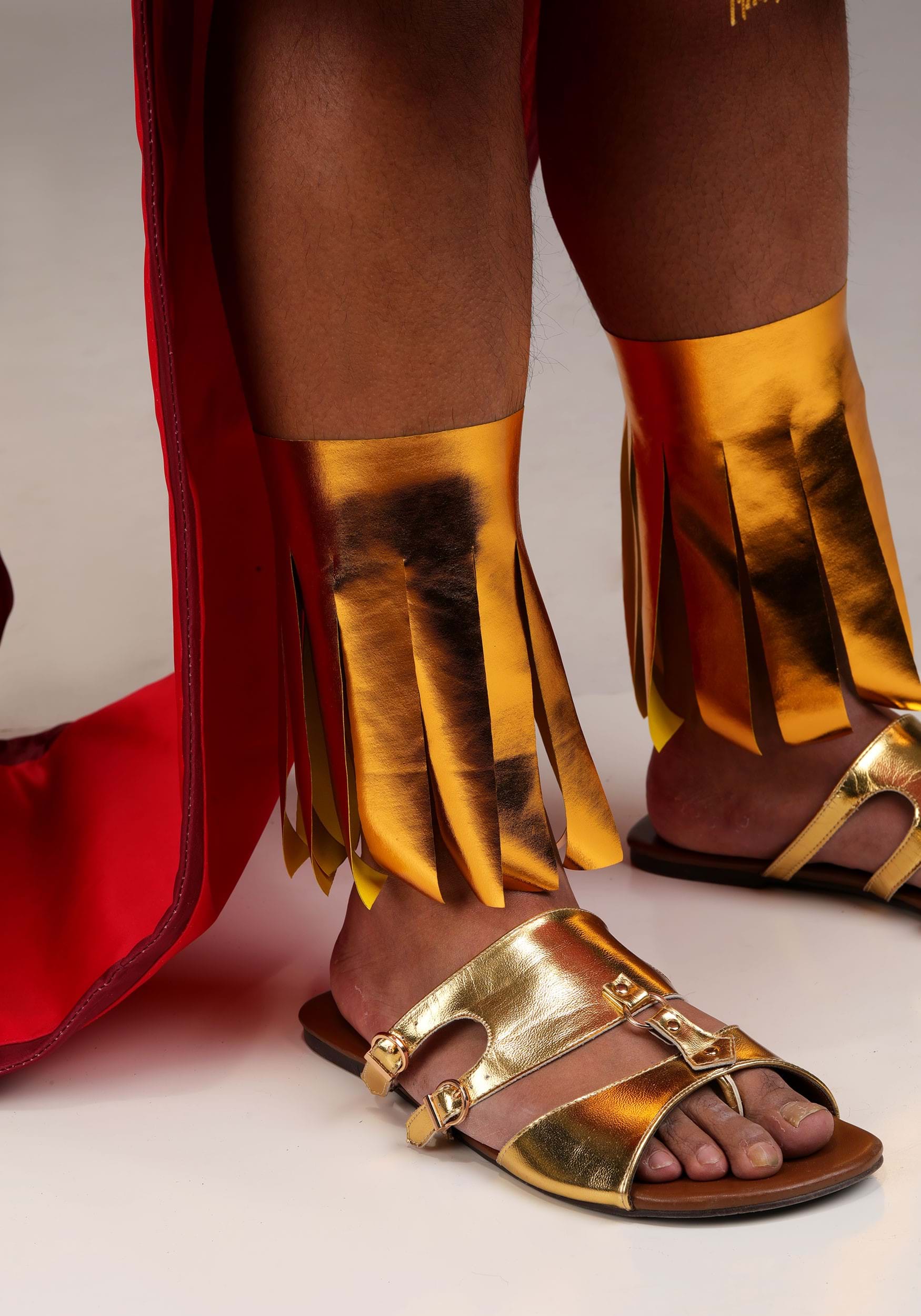 - Pair of gold lame cuffs have elastic bands to secure on legs