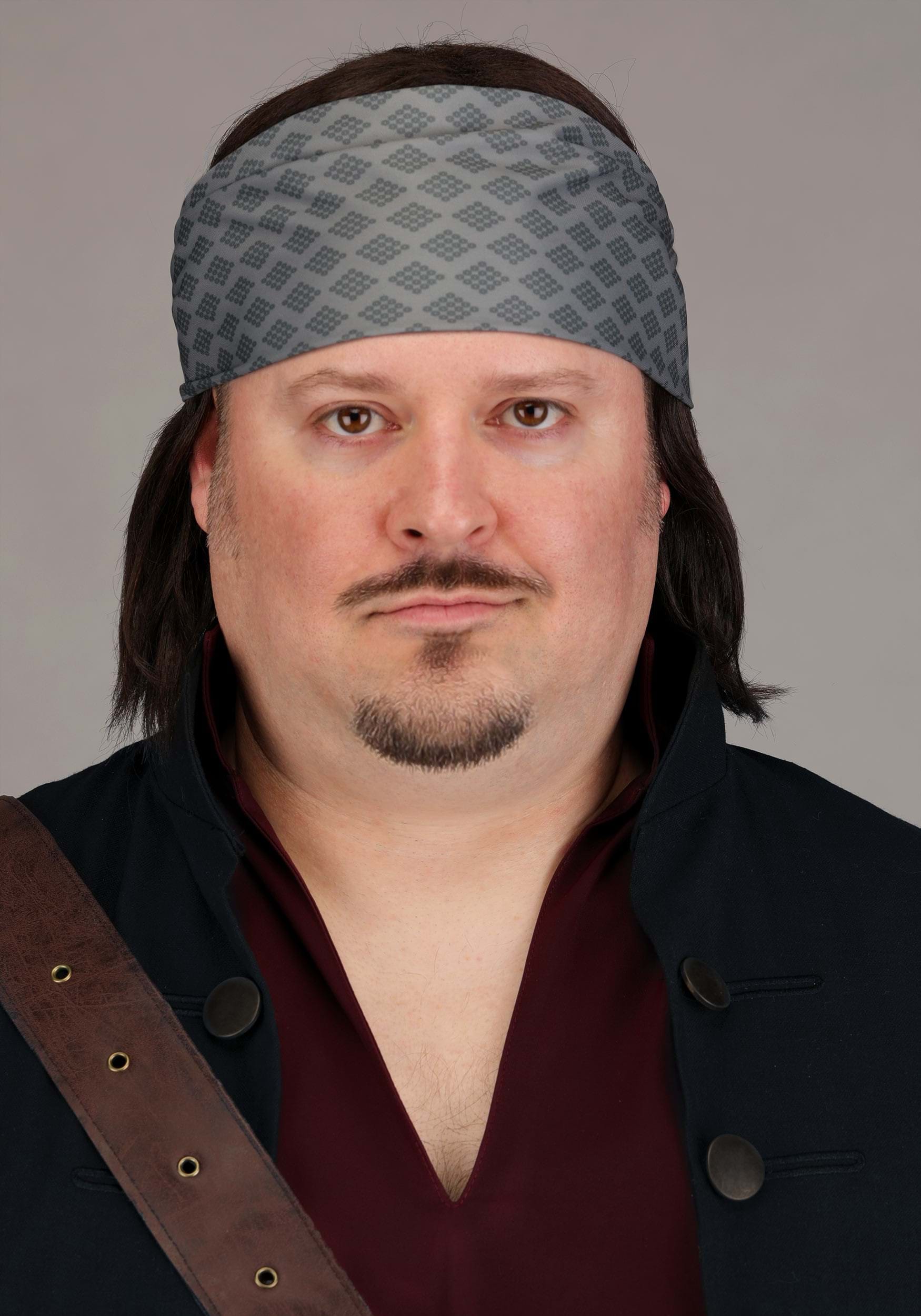 This Plus Size Will Turner Costume features an earthy red shirt with a billowy fit, gathered cuffs, and an open V-neck for that rugged pirate look. A black pirate coat, a printed sash, and a faux leather belt and shoulder strap add authentic detail, while the bandana and boot covers complete the outfit.