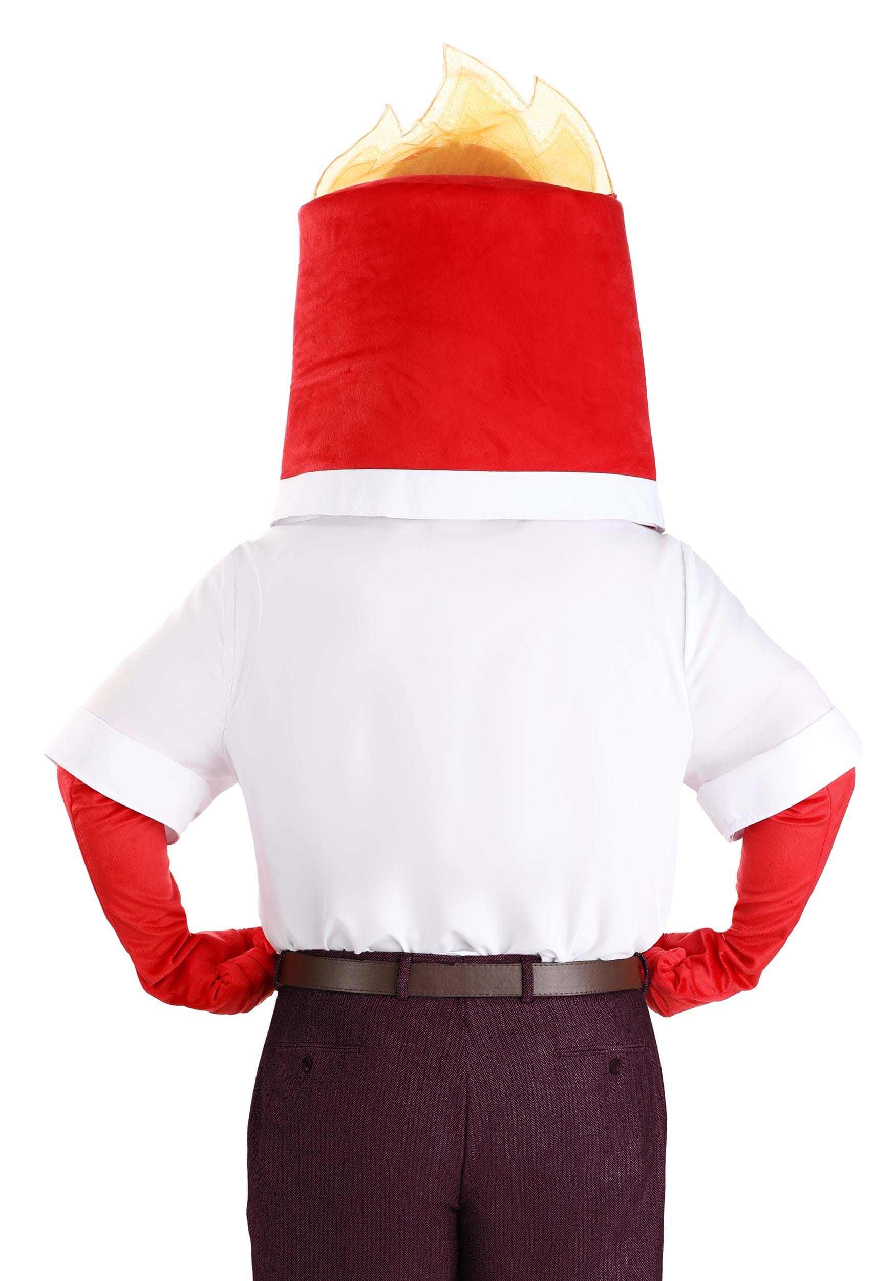 The licensed ensemble includes Anger's essential white pullover shirt with an attached tie along with a pair of fleece, elbow-length gloves that help create a seamless look. But the included foam-backed mask with appliqued facial features and organza, light-up flames ensures channeling Anger is a shining memory!