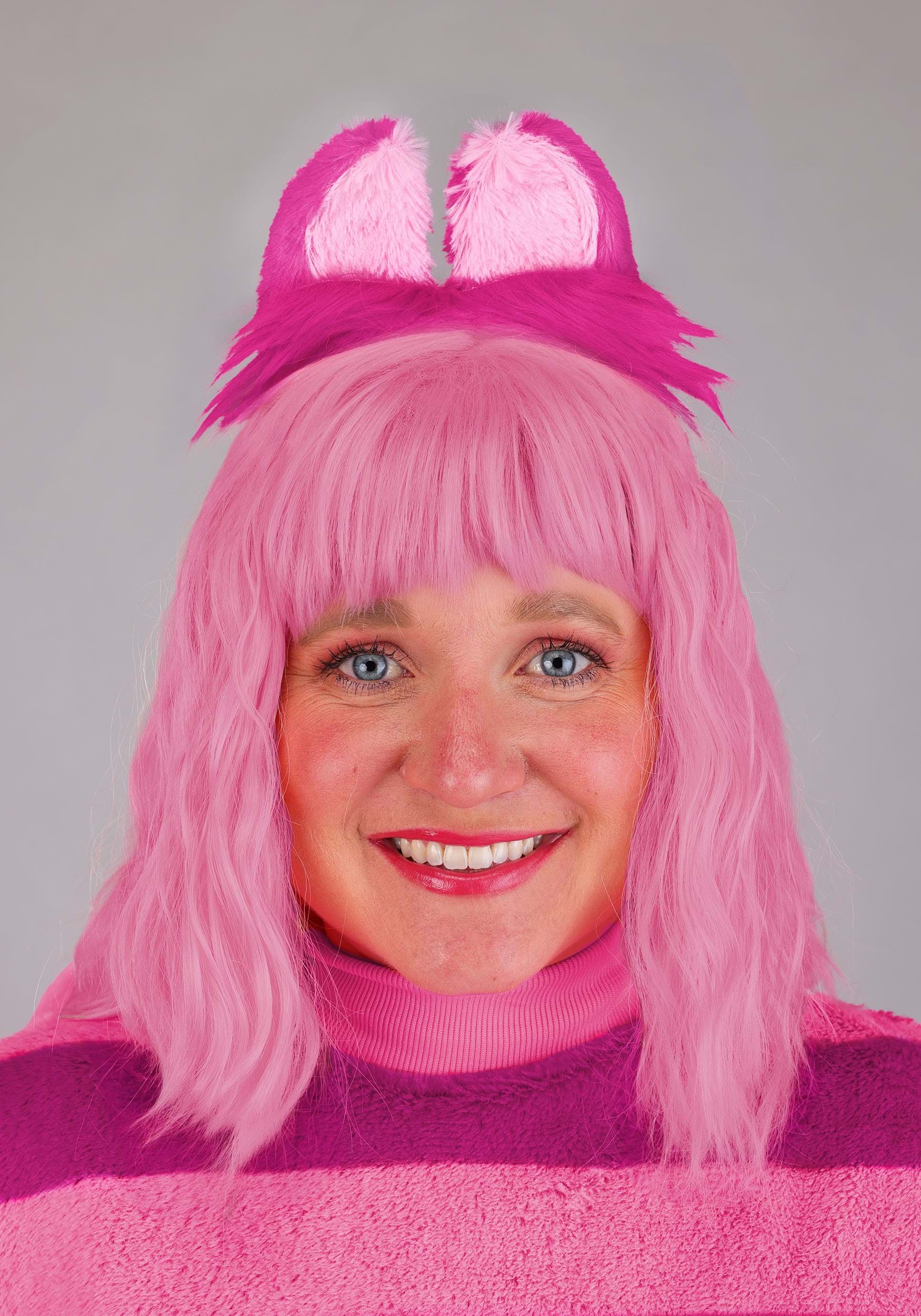 From bustling costume parties to delightful adventures, this officially licensed Cheshire Cat can't be overlooked! Standout in the vibrant striped mock-neck shirt and matching elastic waist skirt made from soft and stretchy plush materials. Ensure the costume stays playful and comfortable by securing its attached tail aloft using a simple loop and button fastener. Complete the look with the included soft-clawed gloves and cat ears headband.