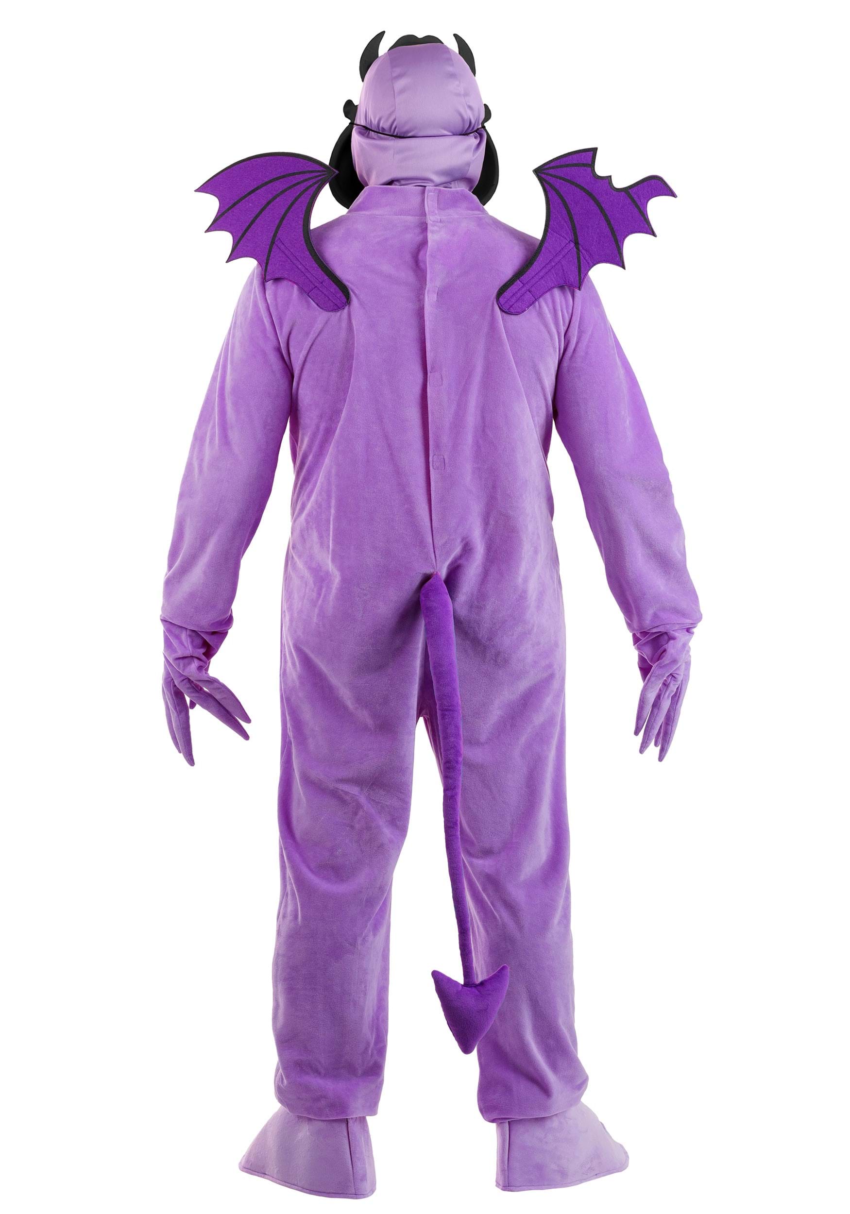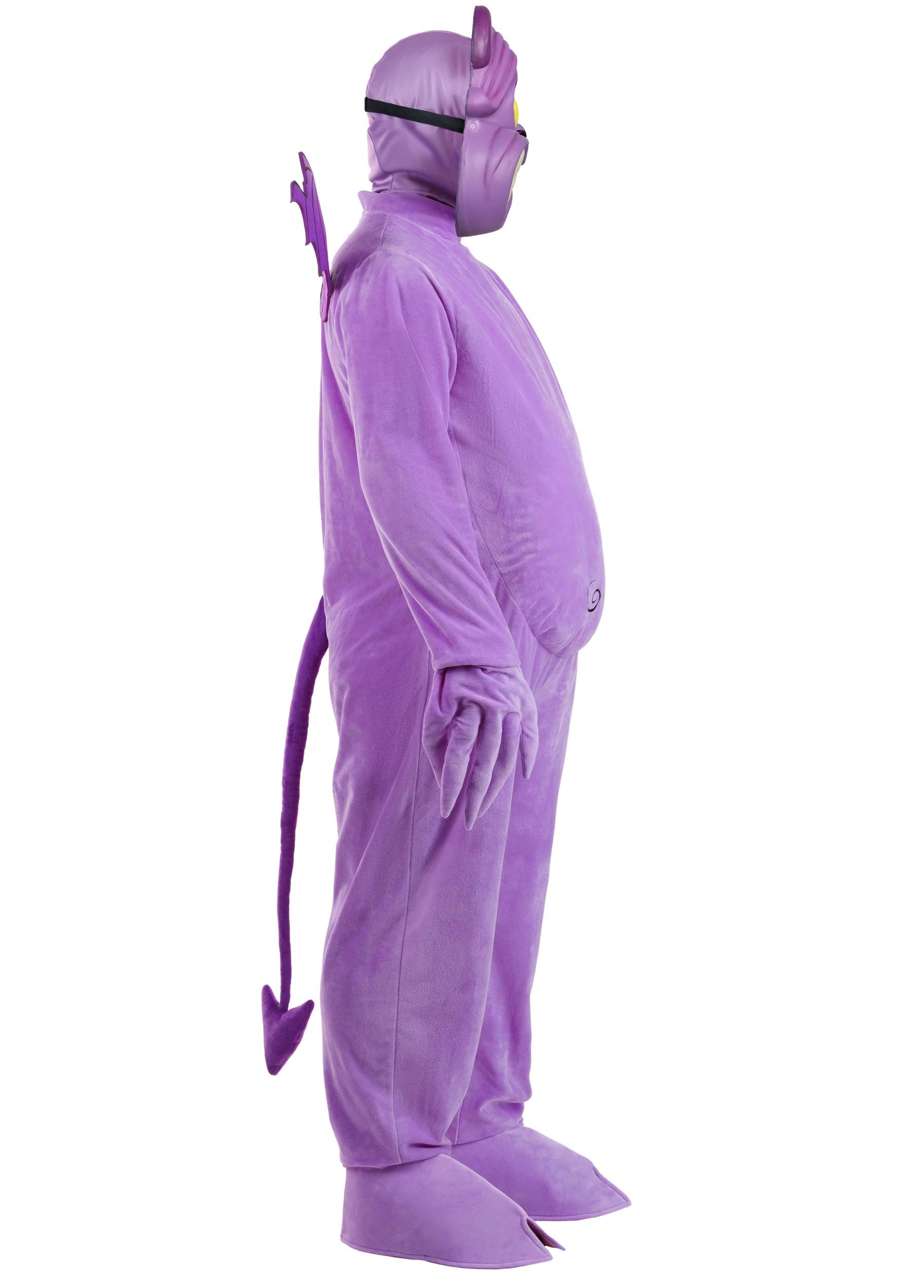 Our Plus Size Pain Costume features a bright purple velour jumpsuit that has bold, exaggerated details like long, fingered gloves, bat-style wings, and a curling devilish tail. The pullover hood and molded face mask bring out Pain's outlandish look, while foot covers cover your choice of footwear. A fun and unmistakable look for fans of classic animated villains!