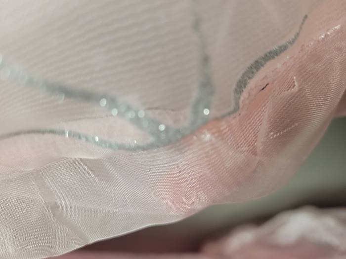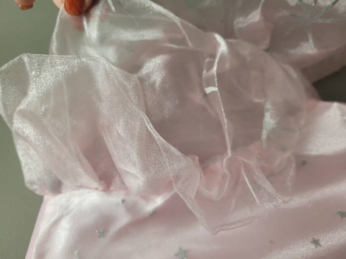 - Lycra fabric dress has satin bodice under tulle layer, jersey knit back panel