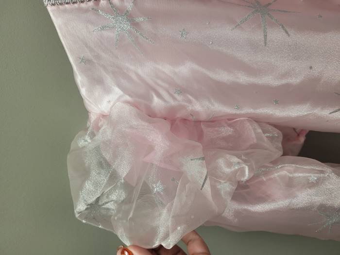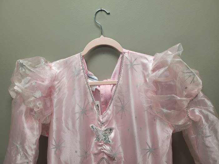 Be the best witch in the Land of Oz thanks to this officially licensed, exclusive Plus Size Good Witch Glinda Costume! The outfit includes a gorgeous pale pink gown that fastens up the back. The whole dress is overlaid with gauzy mesh that is spangled with glittery starburst patterns. The bodice is trimmed with silver rickrack and a silver butterfly is fastened at the V-neckline's lowest point. Add the silver butterfly choker and the tall, sequin-trimmed silver crown with its bedazzled tassel and climb into your bubble!