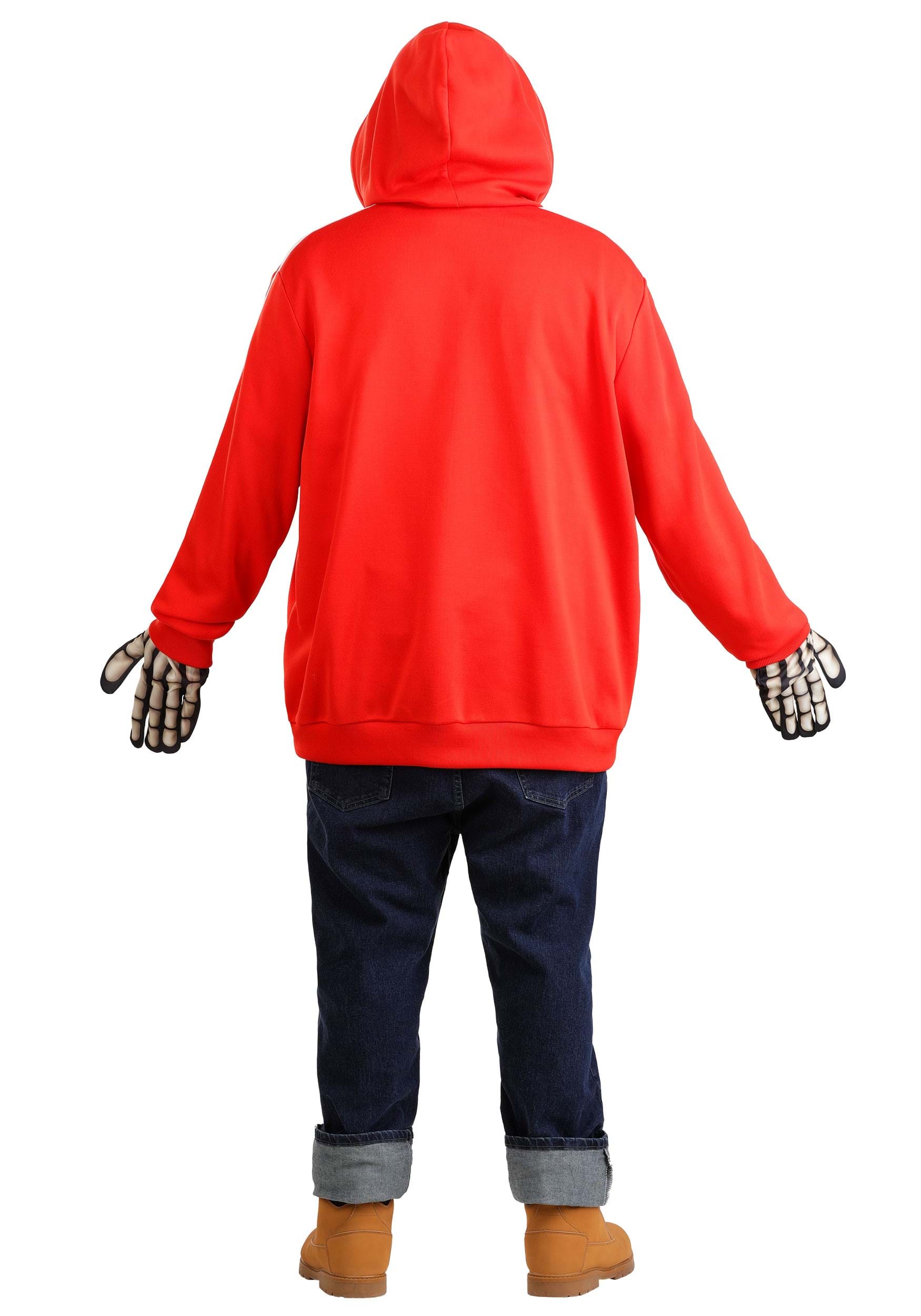 This Disney Pixar Coco Miguel Costume starts with a bright red zip-up hoodie, complete with rib-knit cuffs and screen-printed stripes. Printed soft jersey gloves create the look of skeletal hands, perfect for guitar strumming! The lightweight pressed foam mask finishes the look, securing with an elastic cord and printed with Miguel's painted face and illustrated hair.