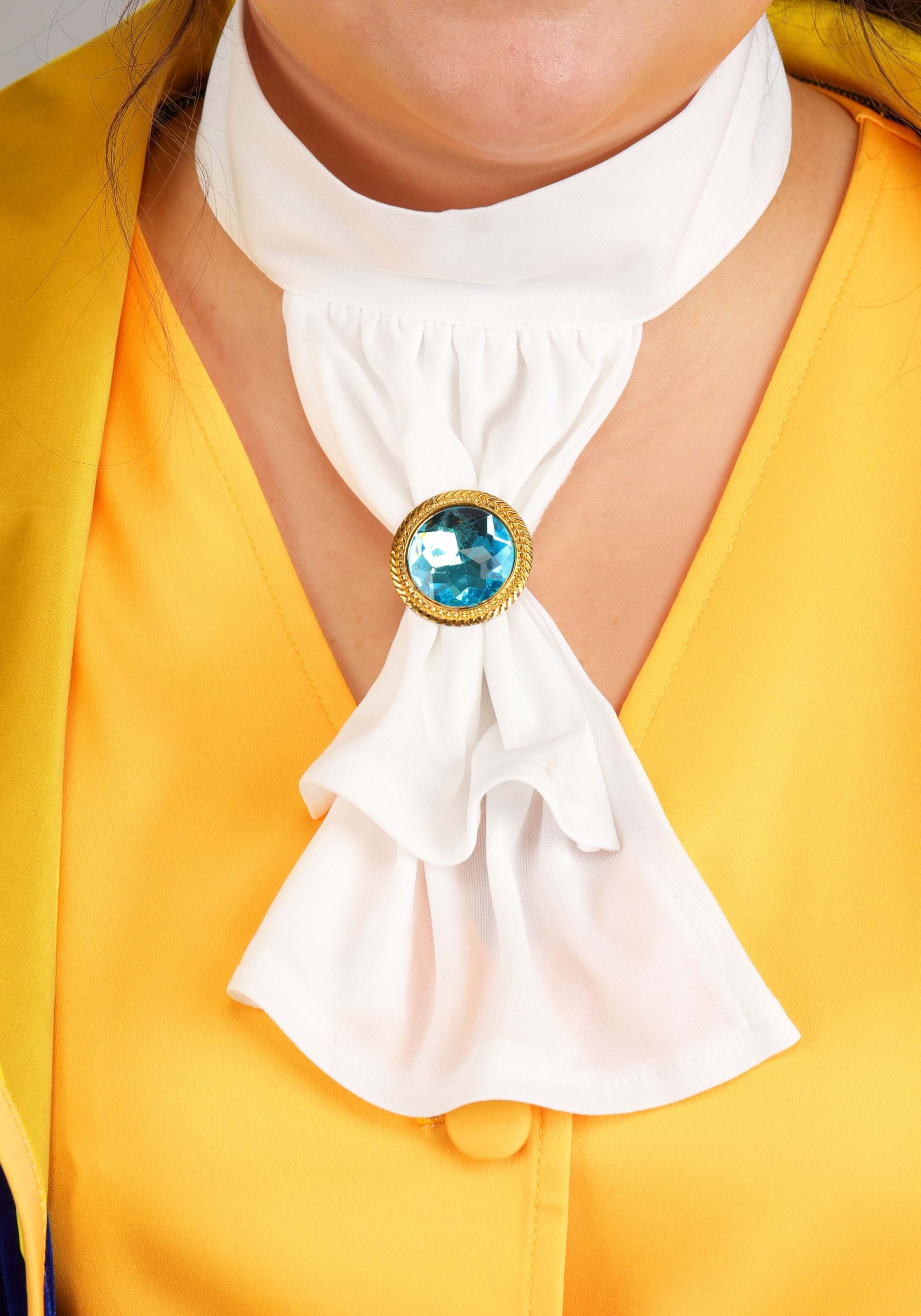 - Jersey knit jabot has a plastic jewel, hook and loop fastener on the back