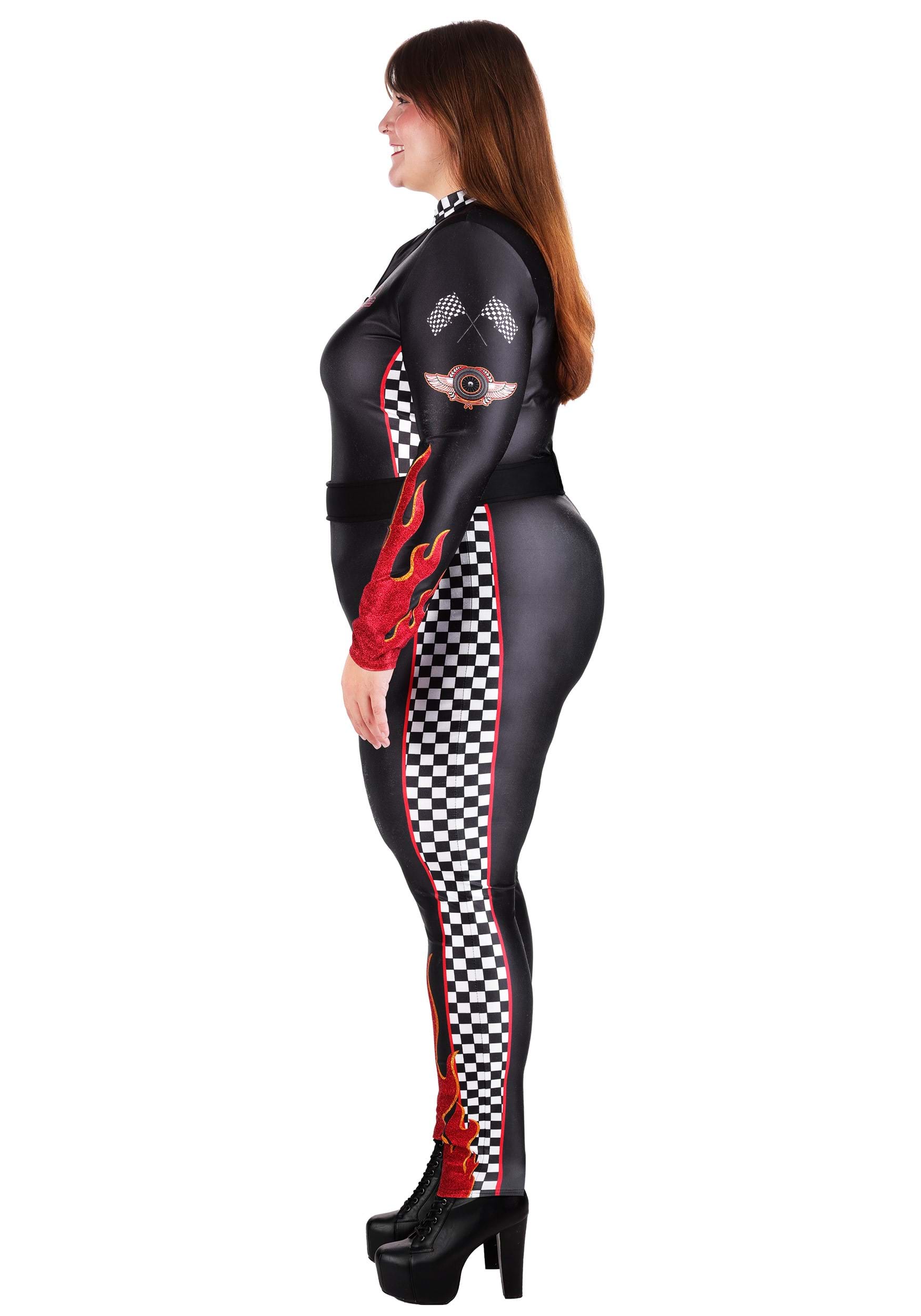 This is an exclusive Plus Size Fiery Race Car Driver Women's Costume.
