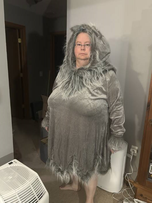 Height 5'5" | Weight 220 | Size 4XReceived yesterday and it is fabulous! The fabric, the fur the workmanship are superior. When I tried it on felt comfy immediately. Soft sort of brushed velveteen doesn't cling but flows with your curves making it very complementary to your figure.and the fur trim is very generous. Ingenious how you put your head thru the opening for the hood and the back zipper helps keep it from falling. Details Like the elastic loops to pull the fur sleve trim over your front paws show the care taken in creating. Length is perfect falling a bit above the knee and the fur points slightly below. The tail!!!!! So full and fluffy. Thanks for making us plus size gals a priority and creating a quality product. This is the 2nd costume I have purchased from here and sealed the deal for guaranteed future purchases.Bottom Line Yes, I would recommend this to a friend.Was this review helpful to you? - Fabulous!!By Bonnie | October 1, 2021