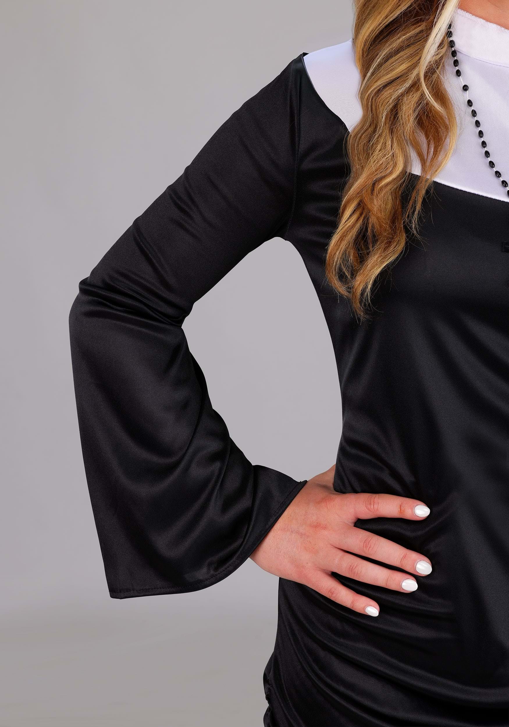 This is an exclusive Plus Size Naughty Nun Mini Dress Costume for Women.