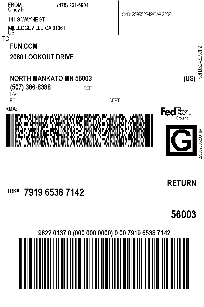 The package can then be taken to any FedEx drop-off location. You can use the FedEx locator to find one near you. You can also take the package to any FedEx driver. Once FedEx has the package, it will take 3 – 5 days for it to be delivered to us.