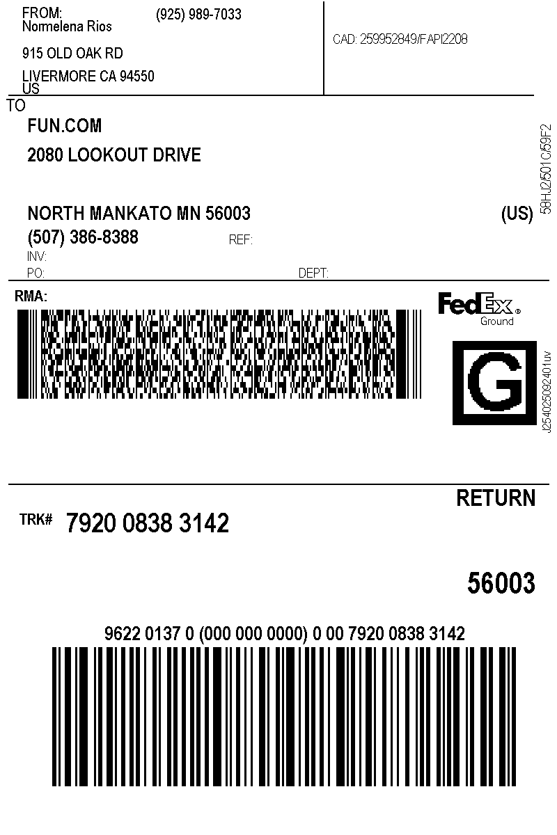 Print Shipping Label and attach to the top of the box.The package can then be taken to any FedEx drop-off location. You can use the FedEx locator to find one near you. You can also take the package to any FedEx driver. Once FedEx has the package, it will take 3 – 5 days for it to be delivered to us.