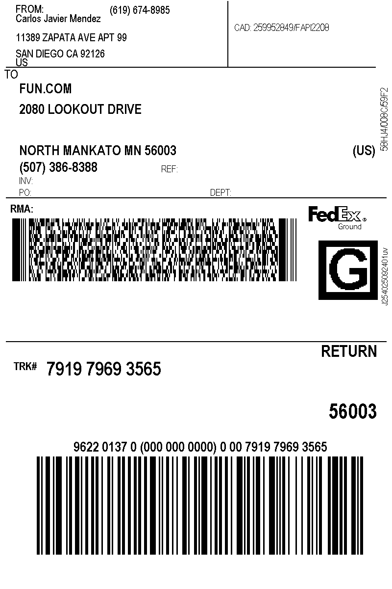 Print Shipping Label and attach to the top of the box.The package can then be taken to any FedEx drop-off location. You can use the FedEx locator to find one near you. You can also take the package to any FedEx driver. Once FedEx has the package, it will take 3 – 5 days for it to be delivered to us.
