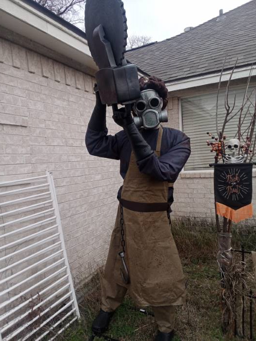 Meet Ripsaw, the guy who shows up uninvited to every horror movie, any haunted house worth its salt, and, if you're really lucky, your front yard this Halloween. He's got that "mad scientist meets deranged butcher" look down perfectly, from the blood-splattered apron to the heavy-duty mask that just screams, "I take my terrifying hobbies very seriously." If you're looking to elevate your Halloween game, Ripsaw is your guy.