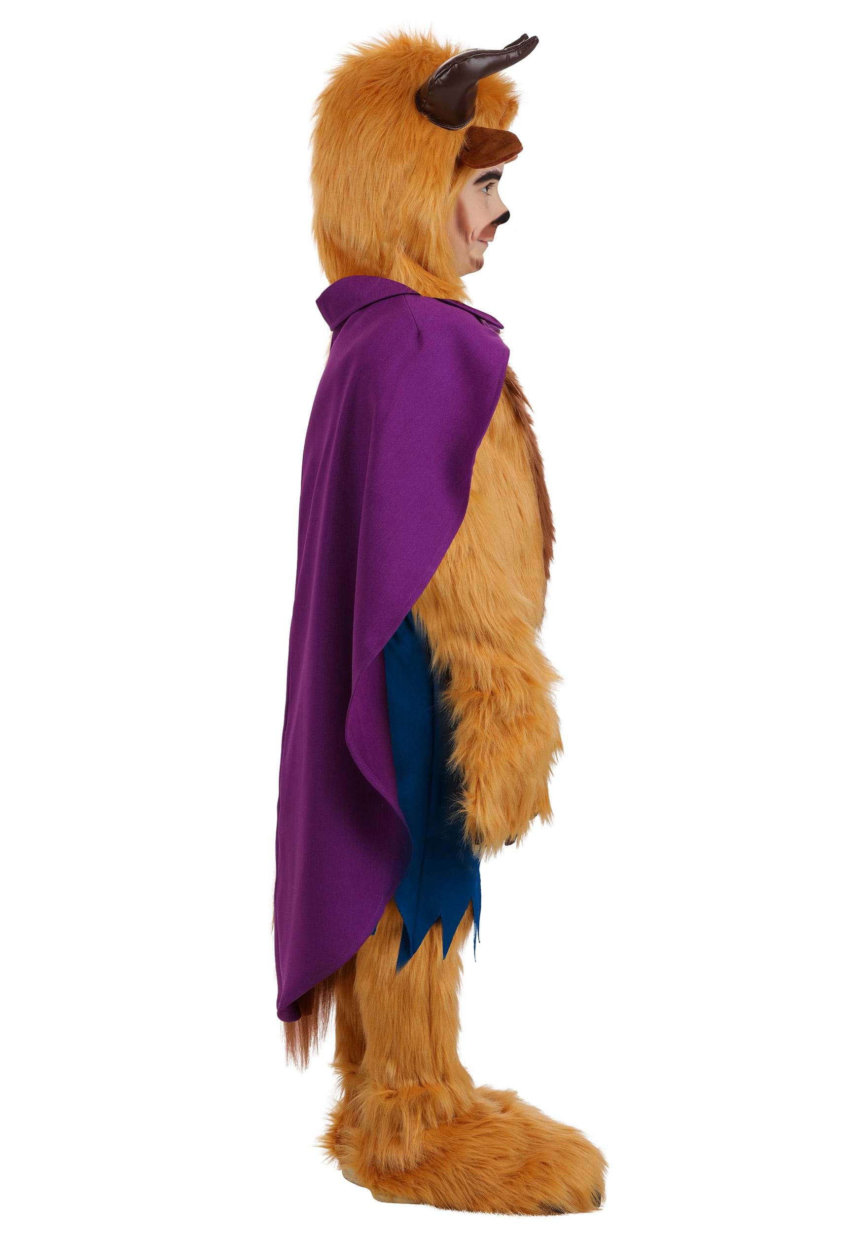 This Toddler Beast Costume has a soft faux fur headpiece with plush horns and an open face, while the furry shirt zips up the back for easy dressing. The blue pants have a jagged hem to look like Beast's legs, and the purple cape fastens at the neck. Faux fur gloves and shoe covers complete this enchanting look.