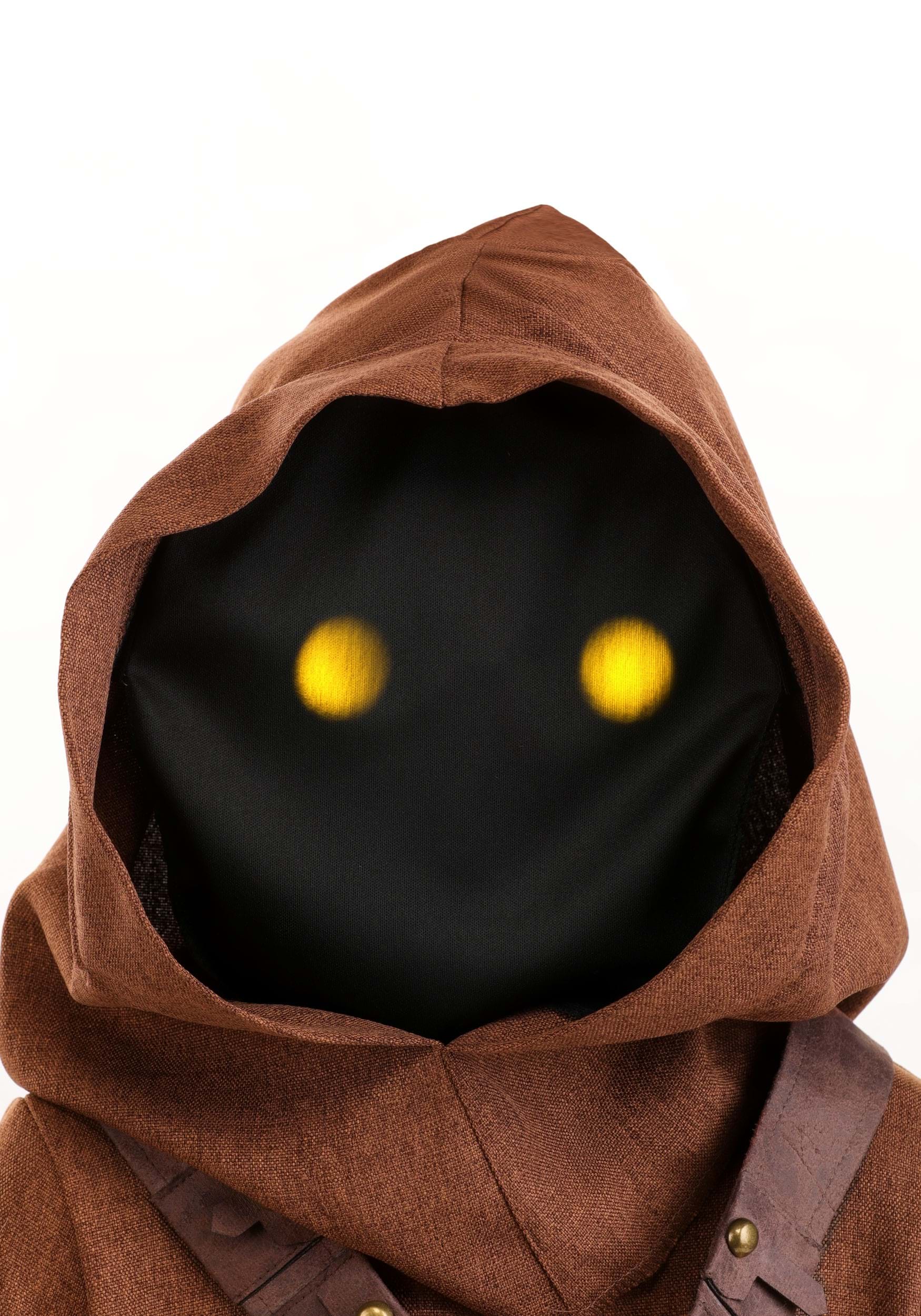 The costume also includes dark gloves that match the hood's inner lining, giving your little Jawa an authentic look from head to toe. But the best part? The glowing yellow "Jawa eyes" that light up from powered glasses hidden just below their eyes. One switch, and suddenly your toddler is a pint-sized scavenger ready for action!