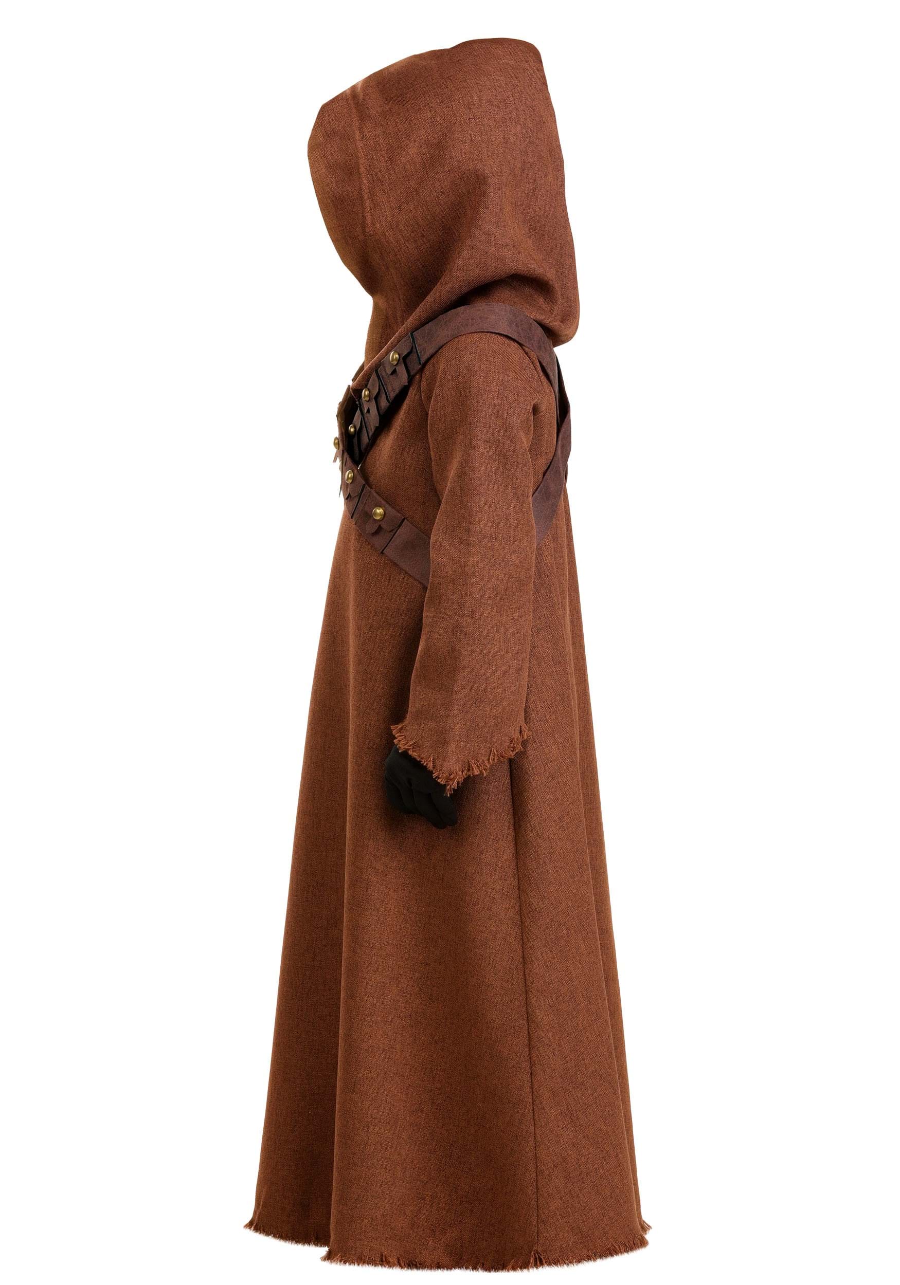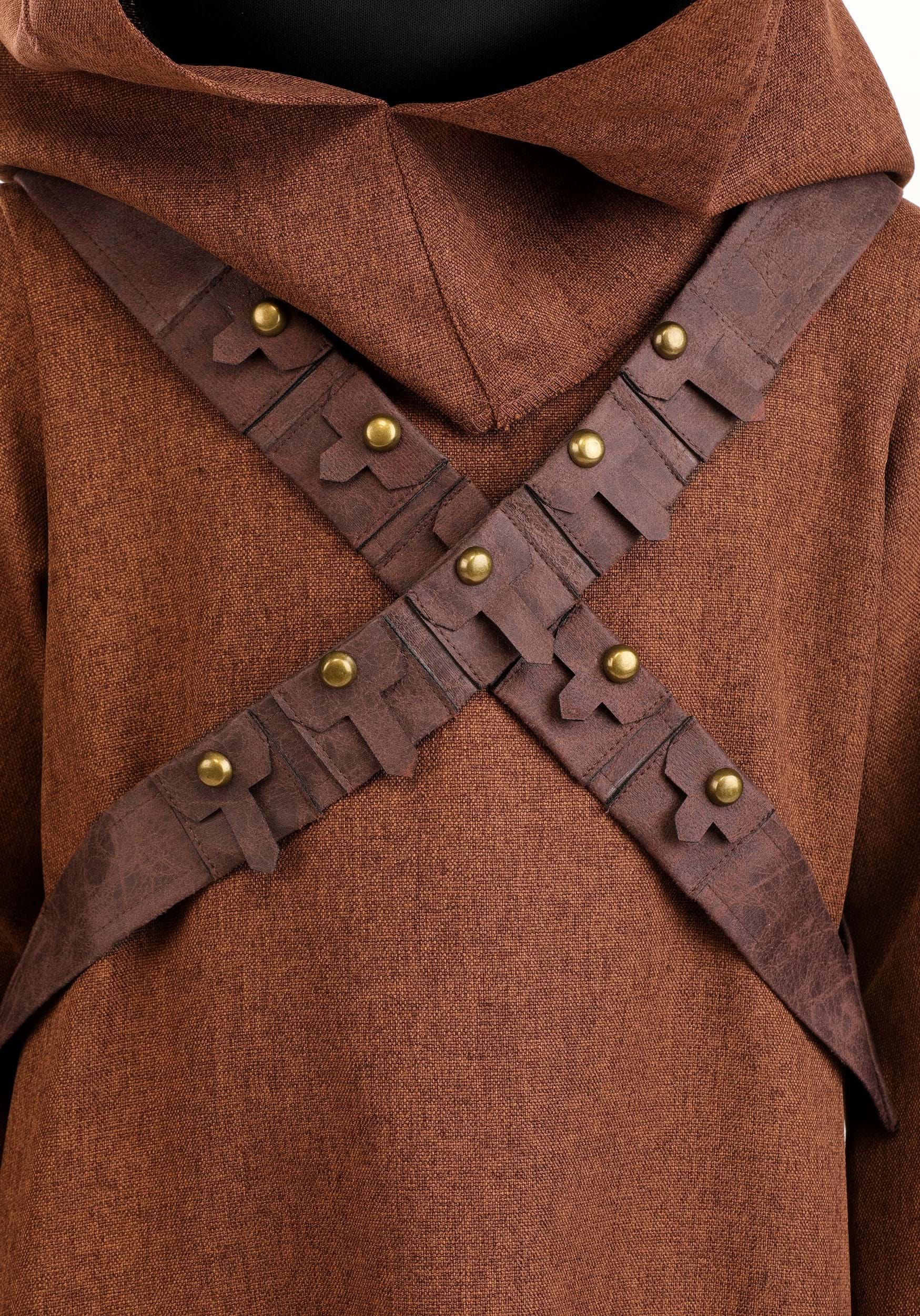 This adorable costume features a rugged brown tunic with a woven texture that looks like it's been through a few desert adventures thanks to the frayed edges on the cuffs and hem. Fastening at the back of the neck with hook-and-loop closures, it's easy to slip on.