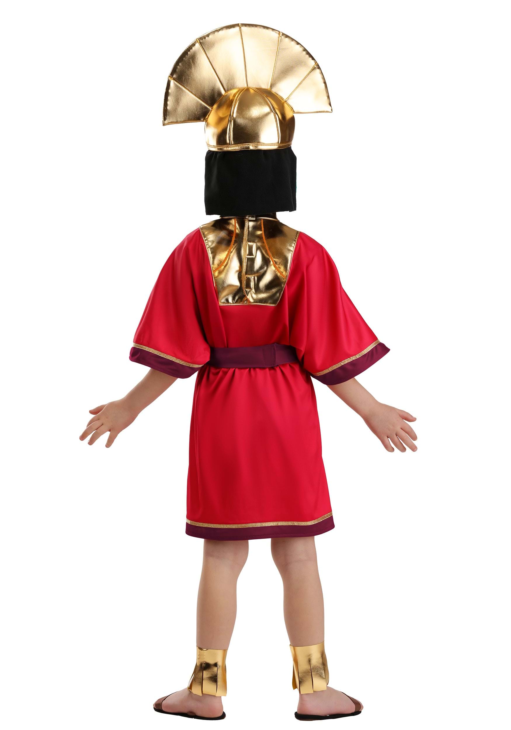 The look starts with a pullover tunic made with lightweight materials. An attached belt gives shape to the flowy garment while hook-and-loop tape in the back ensures secure dressing. Kuzco's crown and hairstyle are reimagined as a soft-sculpted headpiece fit with a detachable fabric wig and earrings. The costume is completed with hook-and-loop leg cuffs.