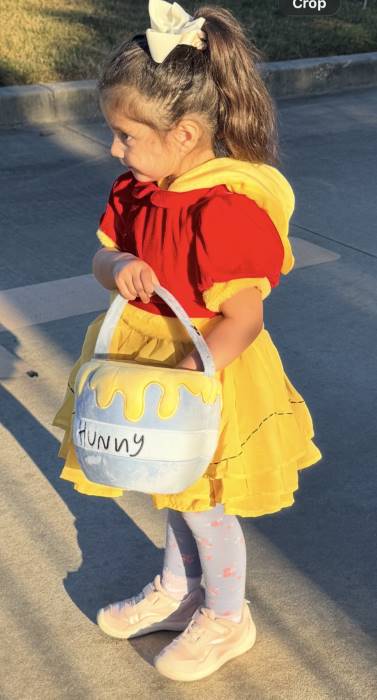 Size 4TWe bought this for my Pooh loving daughter. She is normally 3T but went with 4T and fit her great! I would only recommend sizing up because the head is attached to the overall dress so it might be hard to put hood on if it's the exact fit. This dress is great quality. Definitely not a cheap feeling or looking costume. She's worn it about 30x now and still in brand new conditionBottom Line Yes, I would recommend this to a friend.Was this review helpful to you?