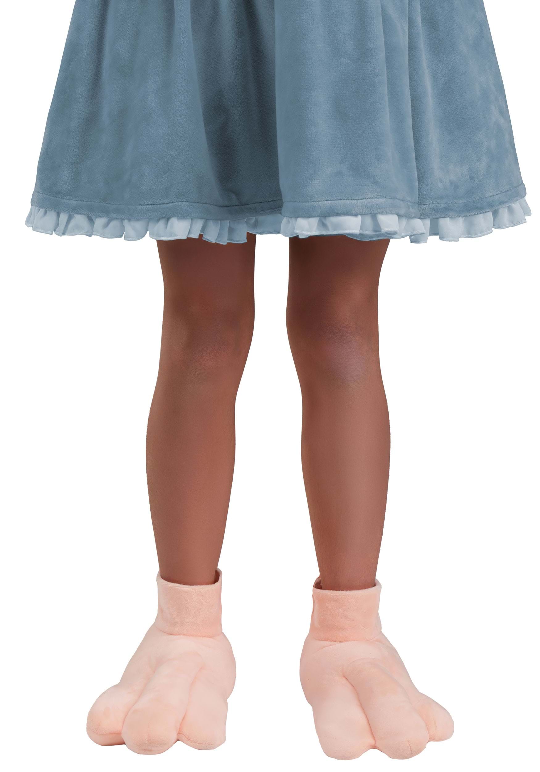Crafted in soft Minky fabric with a hidden zipper in back, this dress includes a tulle underskirt for full-bodied twirl. A poseable tail is stitched on for a playful silhouette, while the light blue scarf ties at the neck. Minky shoe covers slip on with ankle fasteners and underfoot elastic for a secure fit. Top it off with the tall chef's hat—designed with a structured shape and plush ears sewn on.