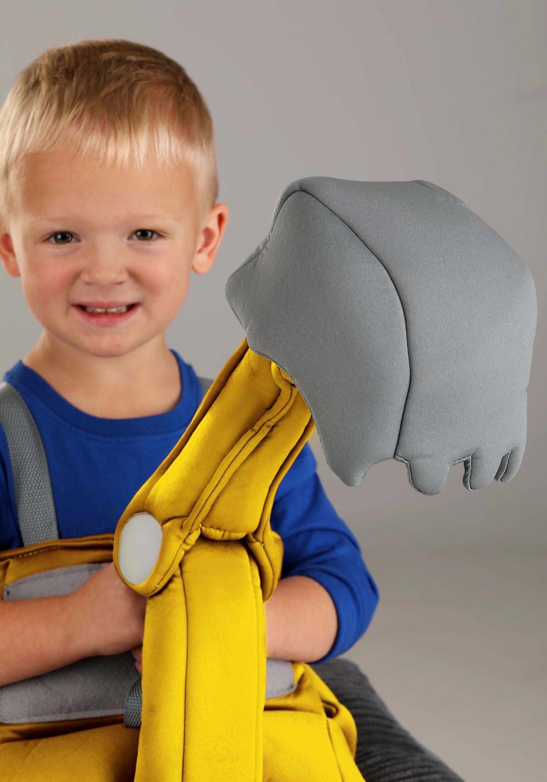 Your little digger will love this Ride in Excavator Toddler Costume! The exclusive outfit consists of a stuffed tunic shaped like a big yellow excavator. Slip it over your little one's head so that it stays on via the gray shoulder straps. They can wear it over a comfy pair of street clothes. The chest is shaped like the front of the excavator complete with a windshield and a long scooper. The sides both have soft-stuffed gray "treads" just like the real deal.