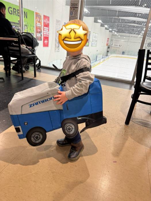 The lightweight build means they can easily toddle from the couch to the fridge and back, smoothing imaginary ice with every step. Great for hockey games, Halloween, or confusing the elderly at the grocery store, this costume is a certified win for kids who love vehicles, rink vibes, or just being delightfully niche.