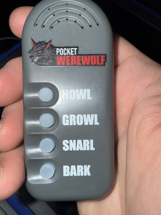 This gray plastic sound box is compact enough to hide in a pocket but loud enough to startle innocent bystanders. Each button is clearly labeled—HOWL, GROWL, SNARL, and BARK—so you know exactly what chaos you’re about to unleash. Tap one and you’ll hear an appropriately monstrous noise blast out of the built-in speaker.