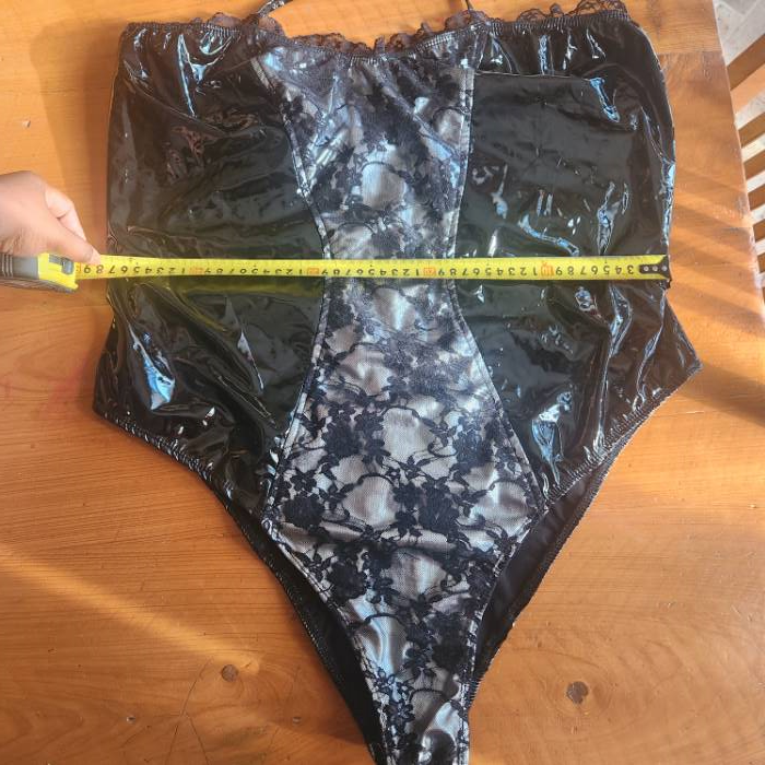 - Floral lace overlay on metallic silver bodysuit front inset panel