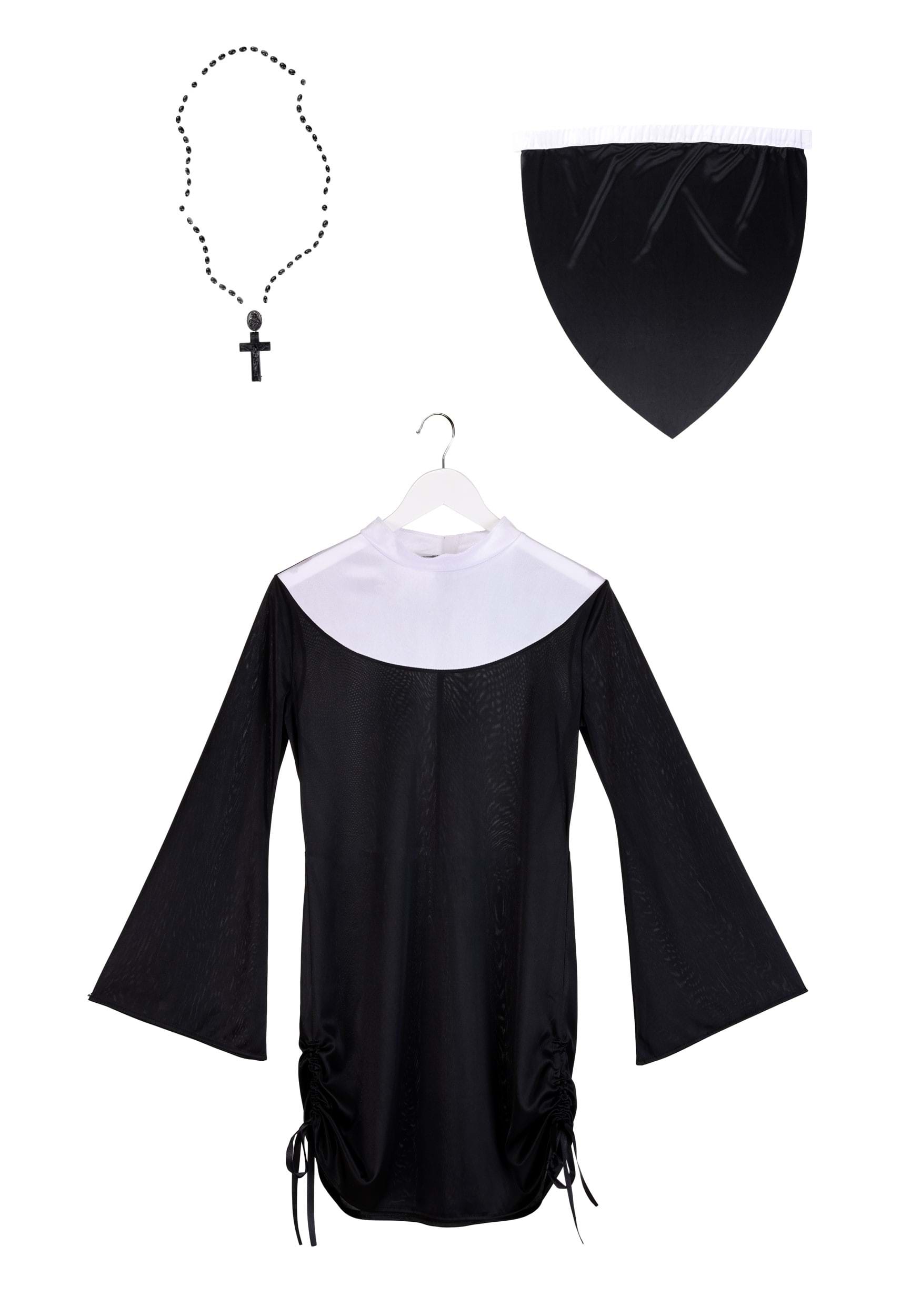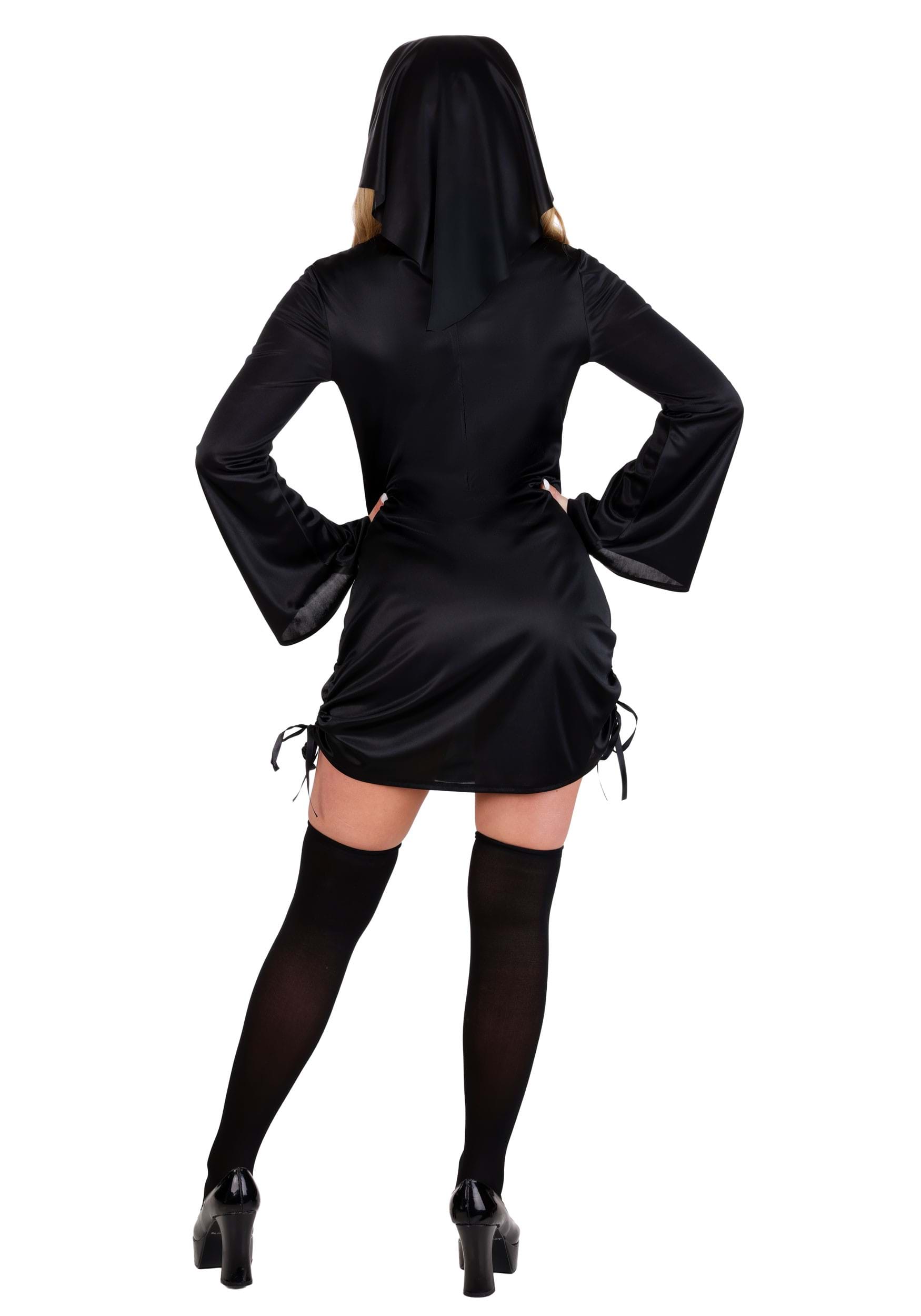 This is an exclusive Women's Naughty Nun Mini Dress Costume.
