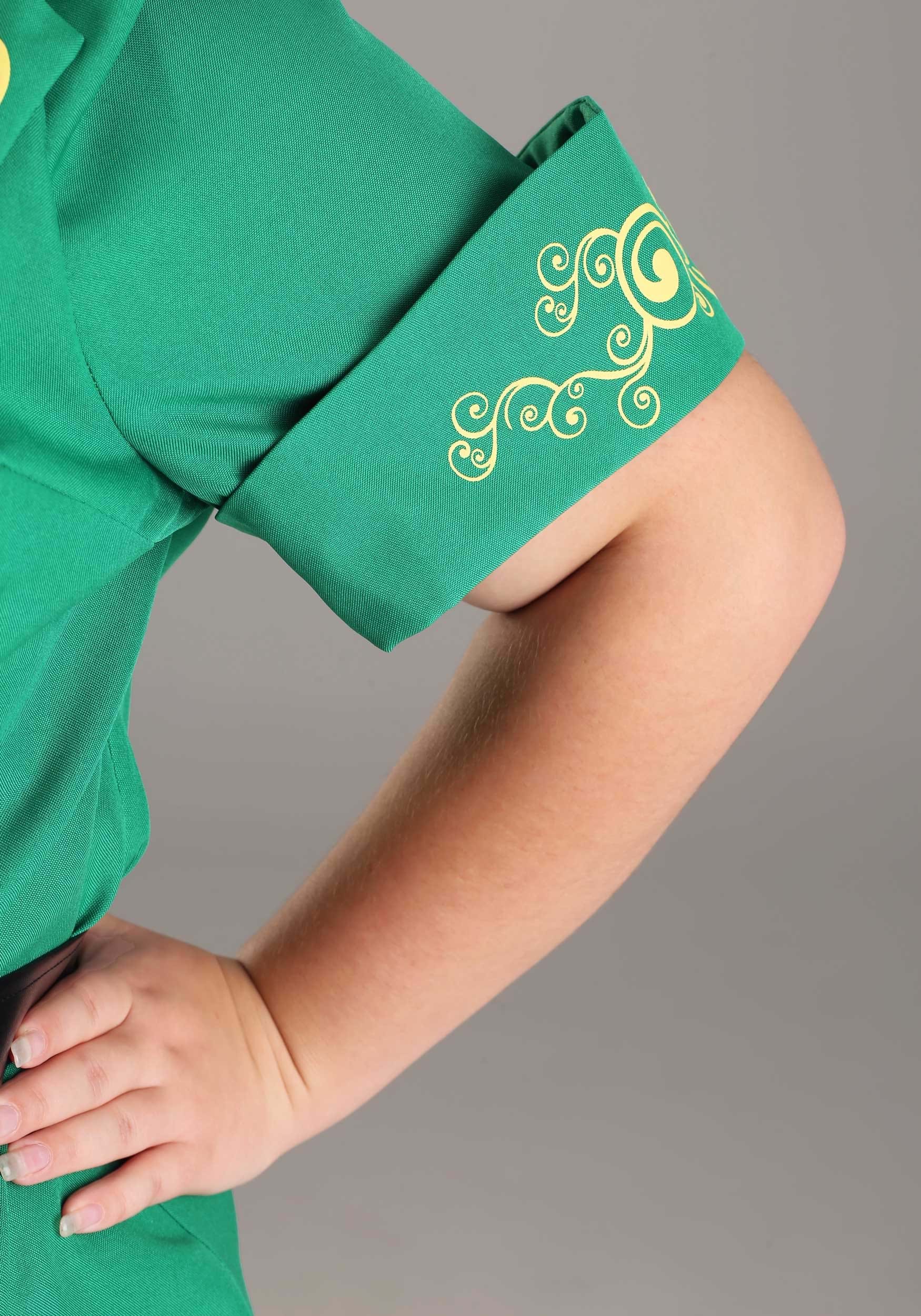 Height 5'4 | Weight 283 | Size 3Xok so i got this costume to have fun on st patricks day and it is as vibrant green and really pretty in the picture it shows no gap between the gold vest and the pants how ever unless she had those pants hiked up to her boobs there is a significant gap between where i wear my pants on my waste and where that vest stops.that gap sucks because its very hard to find a color to match it. so my solution was to have a white dress shirt under it short sleeve of course and the collar of the dress shirt helps the bow tie to really pop! other then that gap everything fit nice had no problem using the belt it fit perfectly. i wear a size 26/28 size if that helps size comparison. OH and the white on her kegs those are socks they come with it too!Bottom Line Yes, I would recommend this to a friend.Was this review helpful to you? - Five StarsBy Anonymous | February 19, 2022