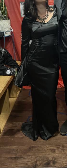 This dress transforms any occasion into a Morticia-worthy moment. The hauntingly elegant design makes a statement without saying a word—although a sharp, perfectly timed comment doesn’t hurt. Step into this look, and suddenly, dramatic lighting just finds you.